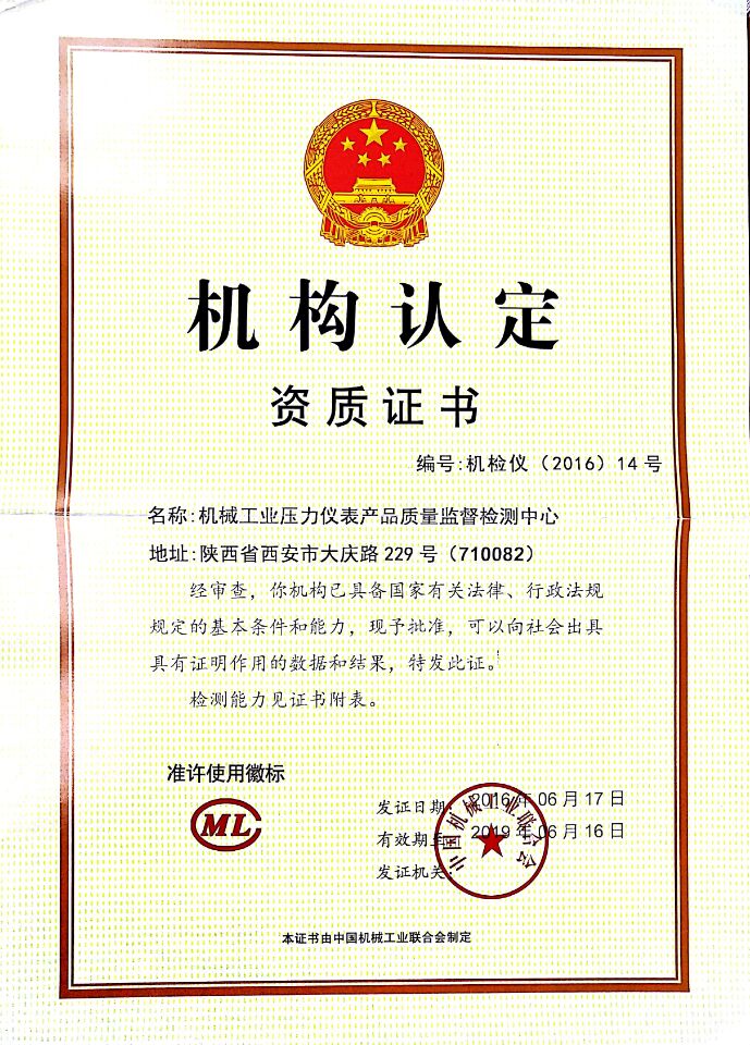 機械工業(yè)壓力儀表產(chǎn)品質(zhì)量監(jiān)督檢測中心